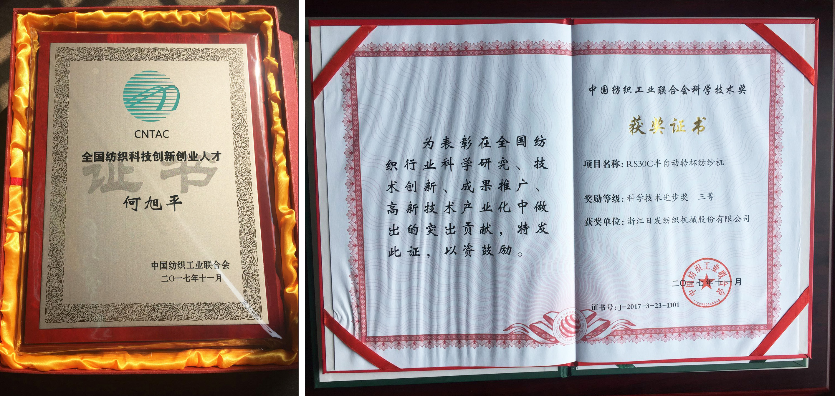 中國紡織工業聯合會副會長李陵申在大會作了《大力實施創新驅動發展戰略,推進新時代紡織科技強國建設》的主題發言。李陵申指出:中國紡織工業聯合會科學技術獎自2004年設立以來(2003年9月設立,2004年開始評獎),迄今已14載。2017年度紡織科技獎正式參評項目139項,經網評后,121項進入會評。經過專家組評審、獎勵委員會審核、社會公示,最后經中紡聯批準,決定對“異型超短再生纖維素纖維關鍵技術研發”等88個項目授獎。一等獎12項、二等獎36項、三等獎40項。其中日發紡機“RS30C半自動轉杯紡紗機”獲”中國紡織工業聯合會科學技術進步獎三等獎“!