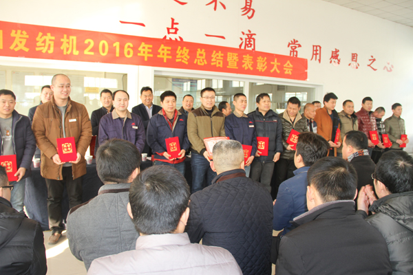 大會現場表彰獎勵2016年度先進和創新人員,極大的鼓舞了員工的工作積極性。期待在新的一年里,山東日發紡機將再創新輝煌的盛世篇章!