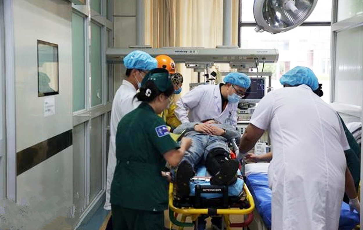 醫護人員為傷員進行治療